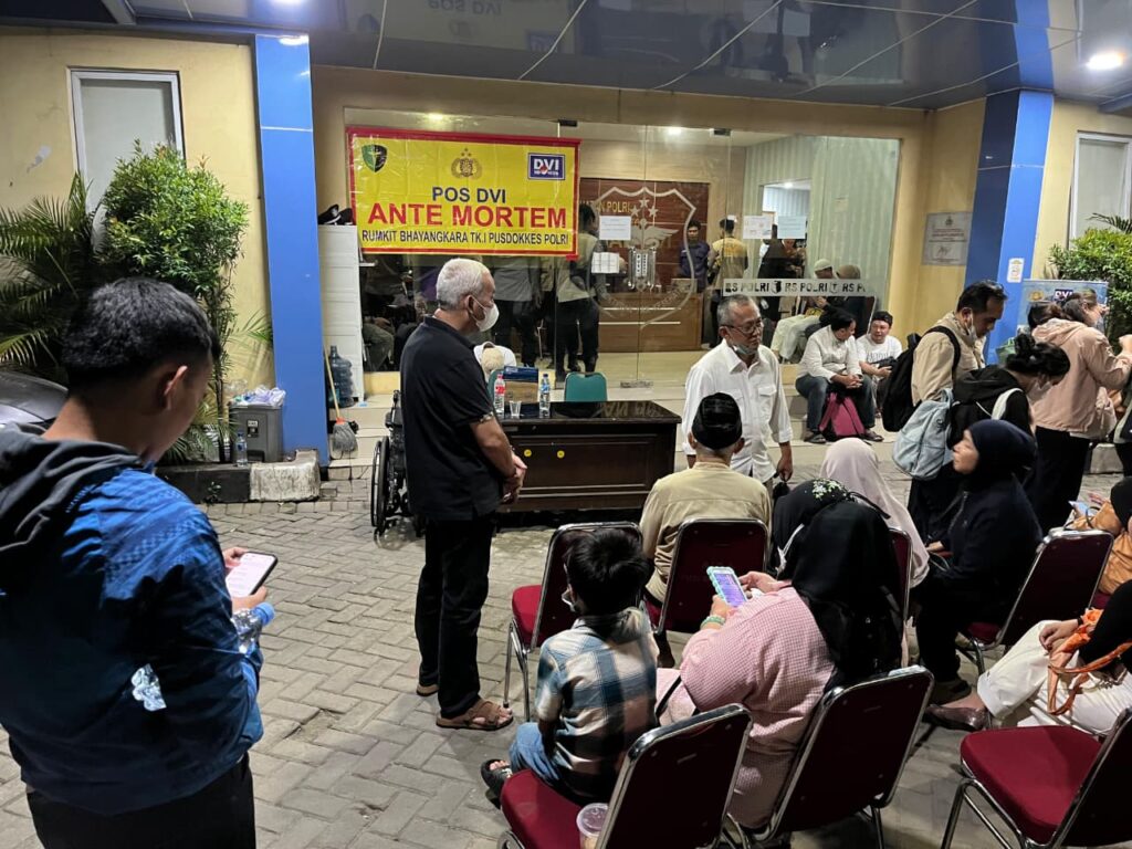 Para keluarga korban dikumpulkan di Posko DVI Ante Mortem, Rumah Sakit Bhayangkara TK.I Pusdokkes Polri, Kramat Jati, Jakarta Timur, untuk berkoordinasi dengan tim medis terkait identitas anggota keluarganya.